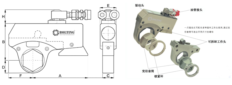 產(chǎn)品的選取依據(jù)螺栓鎖緊和拆松扭矩而定,扭矩值會因螺栓直徑和強度等級不同而有所變化。 |