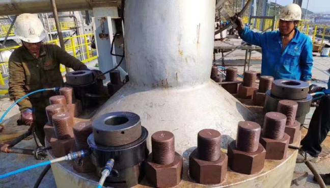 如果電壓沒有問題,電動超高壓泵站的額定最大壓力為150MPa,而泵站卻只能打到120MPa。出現(xiàn)這種情況我們基本就可以斷定是泵站或者液壓螺栓拉伸器內部出現(xiàn)了泄漏?梢詥为毚驂号挪槭潜谜具是螺栓拉伸器出現(xiàn)了泄漏。如果不連接螺栓拉伸器泵站壓力沒有問題,那就是螺栓拉伸器密封泄露,需要更換內部密封。如果單獨打壓泵站還是無法升到最大壓力,那么就可以確定為泵站泄漏。依次檢查調壓閥、截止閥閥芯是否磨損需要更換。如果調壓閥、截止閥沒有問題,那就是泵站內部出現(xiàn)了泄漏,需要聯(lián)系設備廠家進行檢測維修。